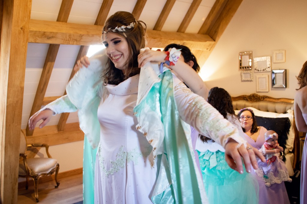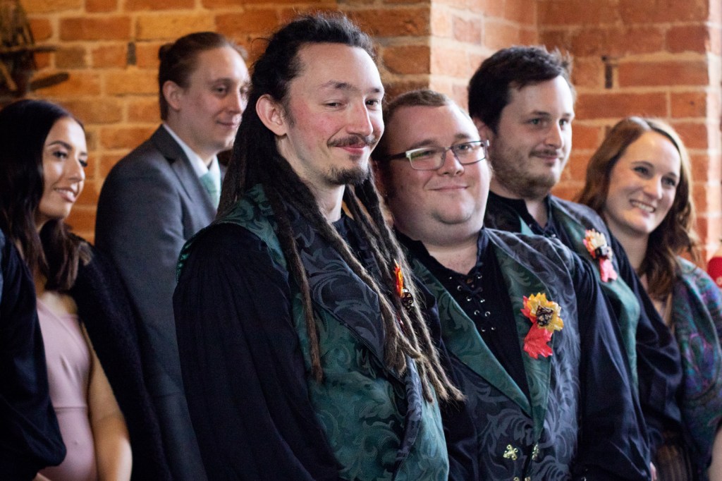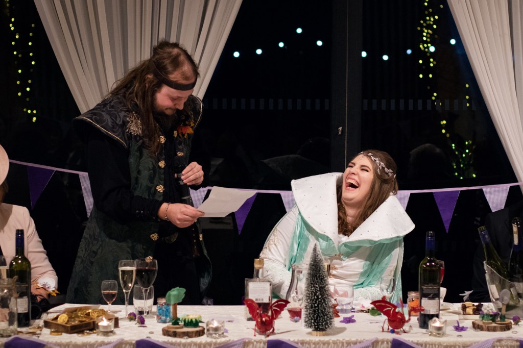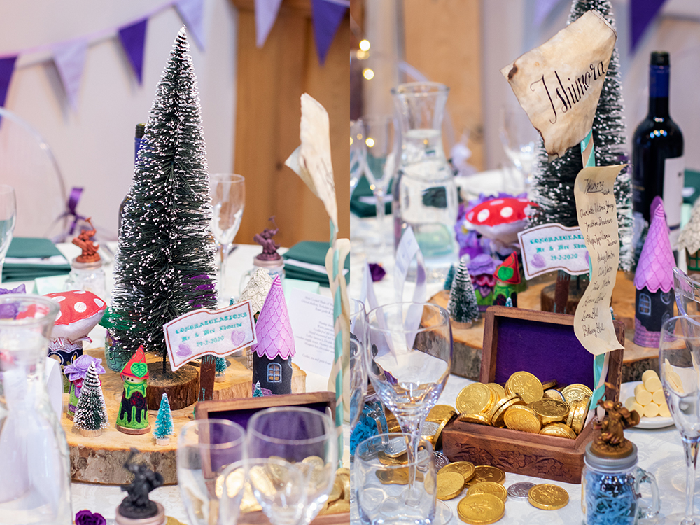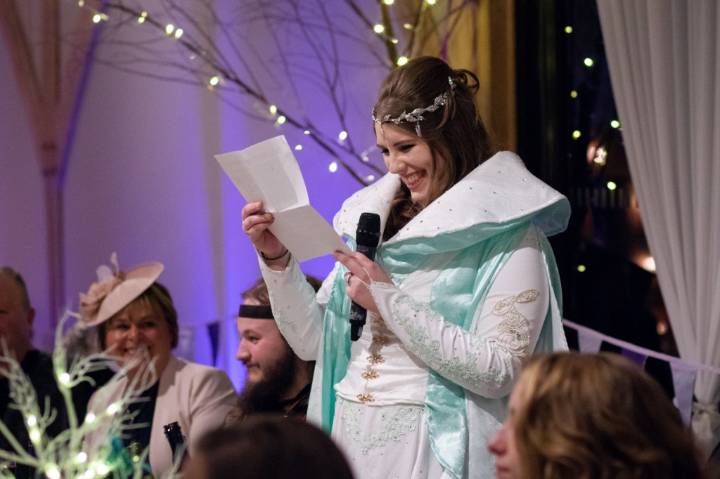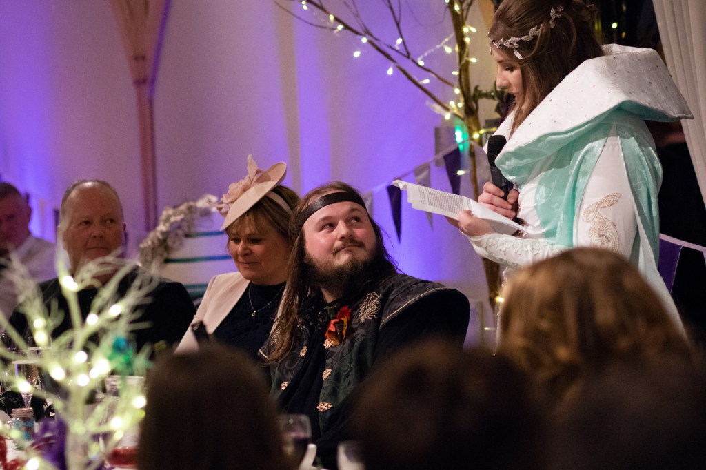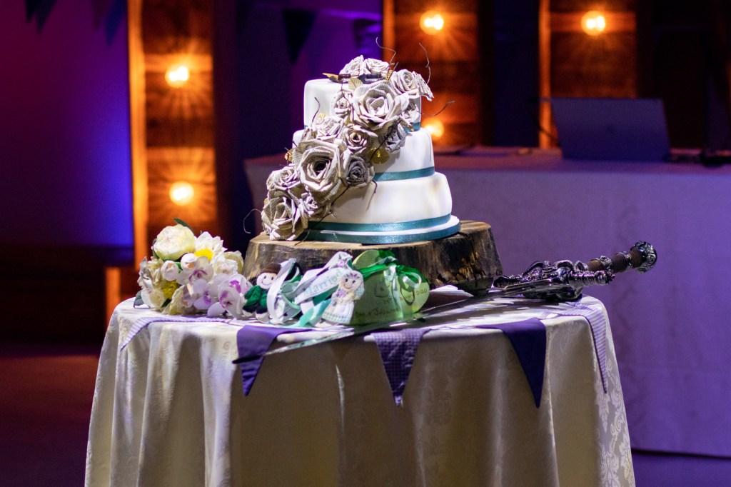Their wedding was so wonderfully nerdy too, from their incredible outfits to providing dice and models for their guests to play war-games with each other during dinner. Everything was created with such wonderful attention to detail and just helped their personalities shine through the day. Redhouse Barn worked enthusiastically with them to make sure everything looked as fantastic as they’d envisioned.
