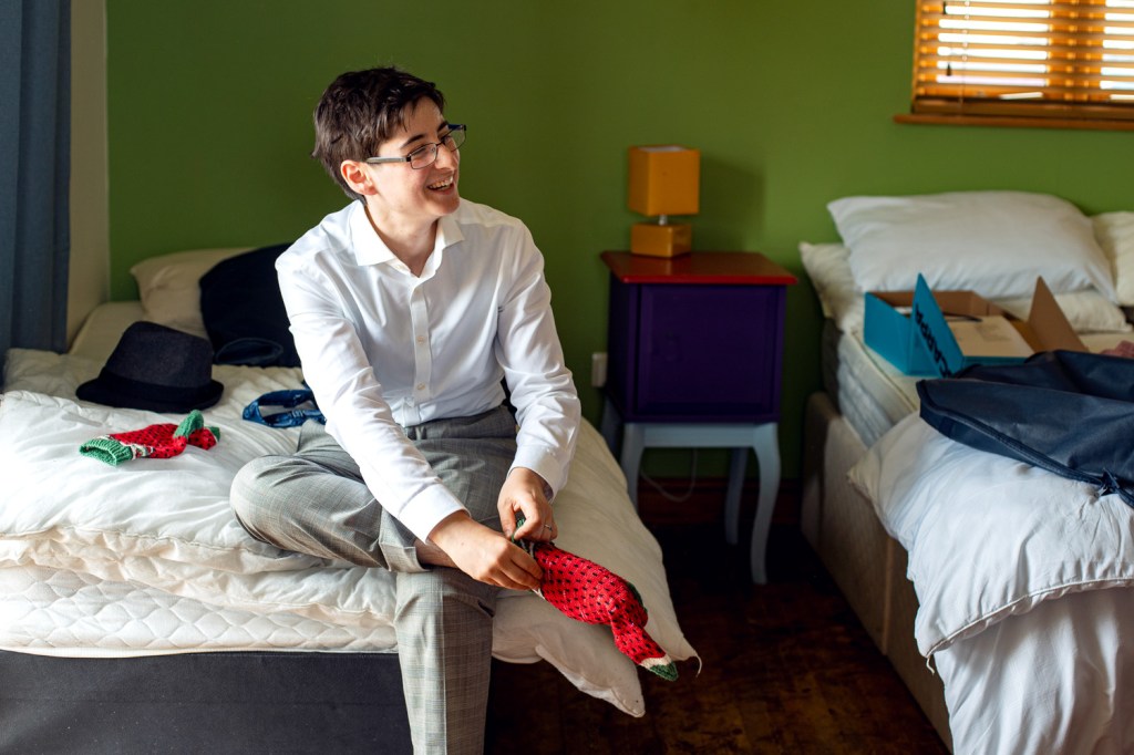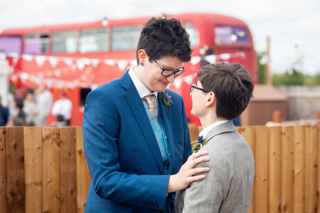 We are back at an old favourite venue, The Missing Sock, which is as delightfully colourful as ever. The day was full of laughter, height jokes, and good company. There was also exceptionally good food, with their “cake” being a selection of brownies topped with figures of themselves and their cat Mac. I hope you enjoy the photos as much as I enjoyed attending the wedding (which is “a lot”).