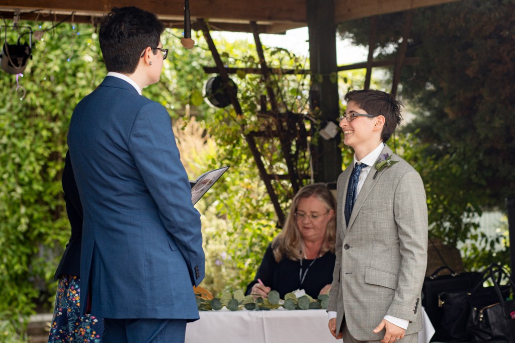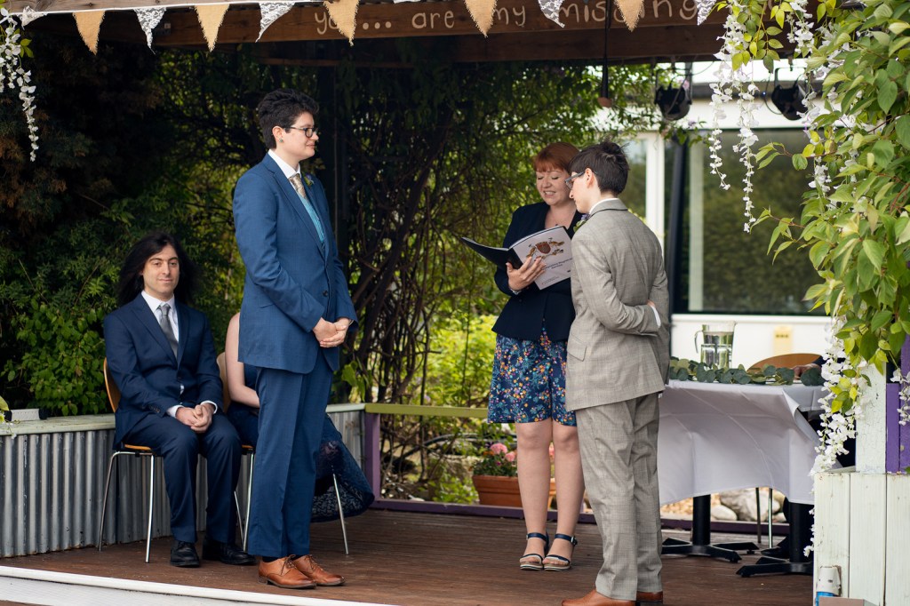 Dani and Isobel both rocked their whole ensemble, even if at one point Dani accidentally put on Isobel’s shoes. Everyone and this wedding was dressed to impress, from sharp suits to swing dresses, everyone looked uniquely themselves and fit for a wedding. We were blessed with gorgeous weather and were able to have the ceremony and party outside, which fitted the more laid back theme of the wedding perfectly. We never felt rushed and it was wonderful to see all friends reconnect throughout the day.